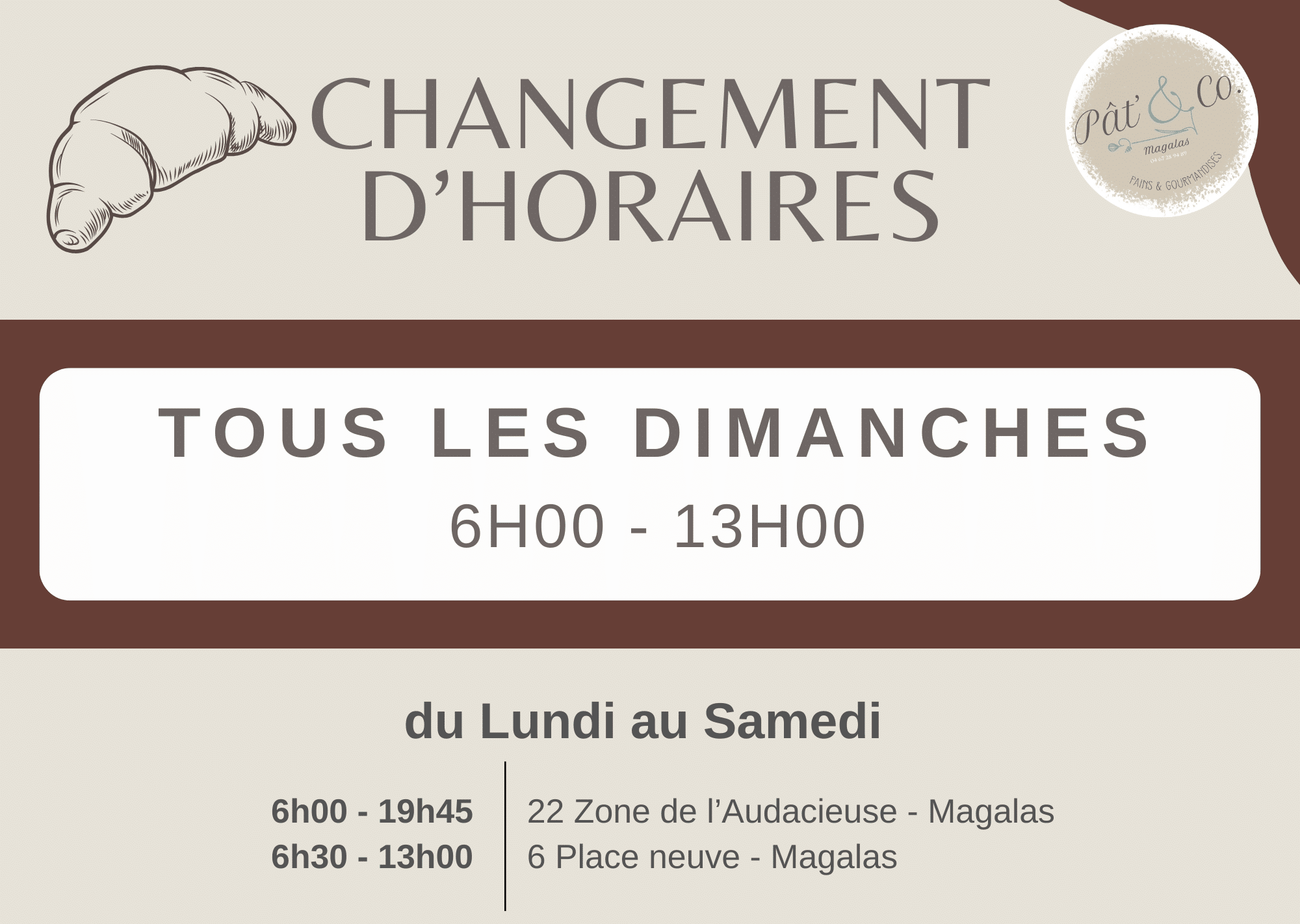 Ouvert du Lundi au Samedi de 6h00 à 19h45