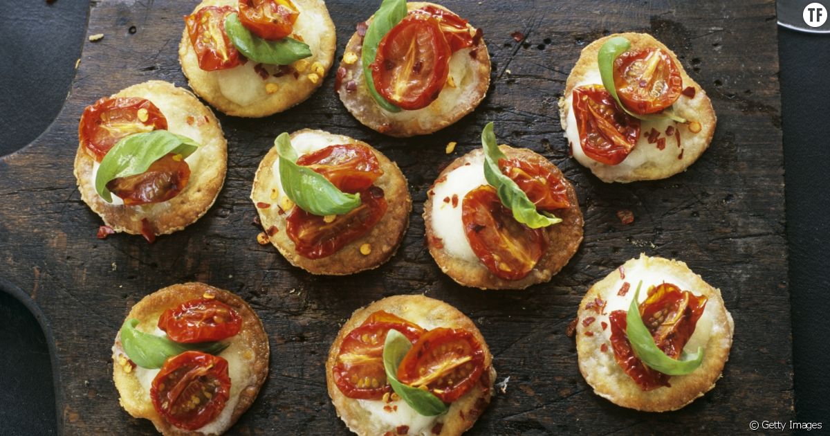 Variété Irrésistible : Le plateau propose une variété irrésistible de petite bouchée apéritive.